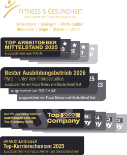 Bester Ausbildungsbetrieb 2026: Platz 1 Fitnessstudios, ausgezeichnet von Focus Money